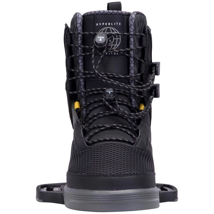 Combining the fit and profile of a System boot with the functionality of a traditional plate was the driving force behind Hyperlite’s new Fusion design. Never before has true footwear construction been incorporated into a plate design. The Fusion Plate takes all of the key design elements of footwear, outsole, midsole and insole combining them with a durable and supportive plate. The combination of these footwear features help to provide maximum comfort while the plate yields a strong and supportive connection to the board.